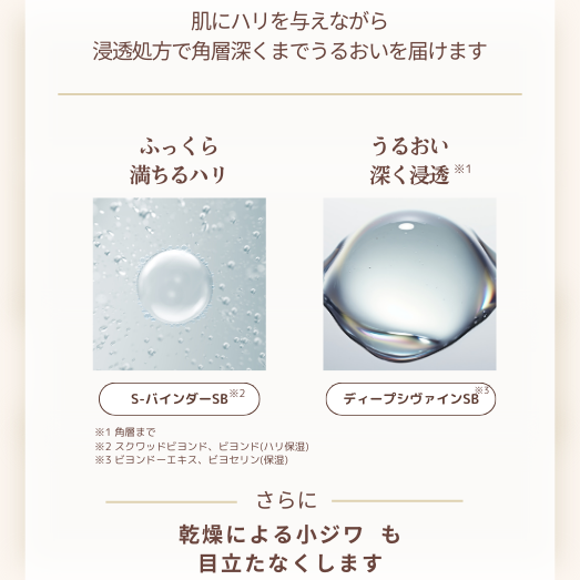 肌にハリを与えながら浸透処方で角層深くまでうるおいを届けること