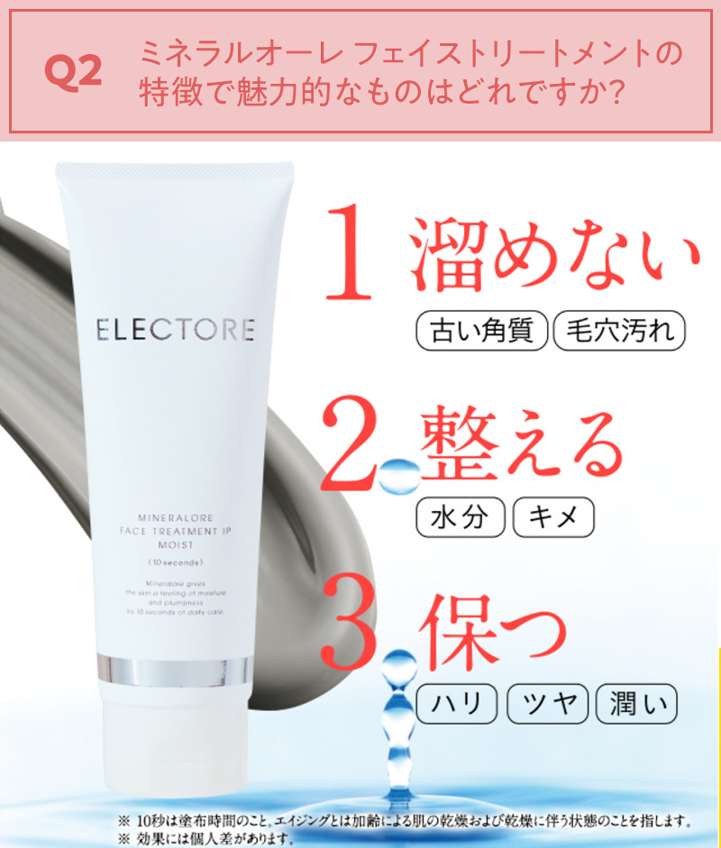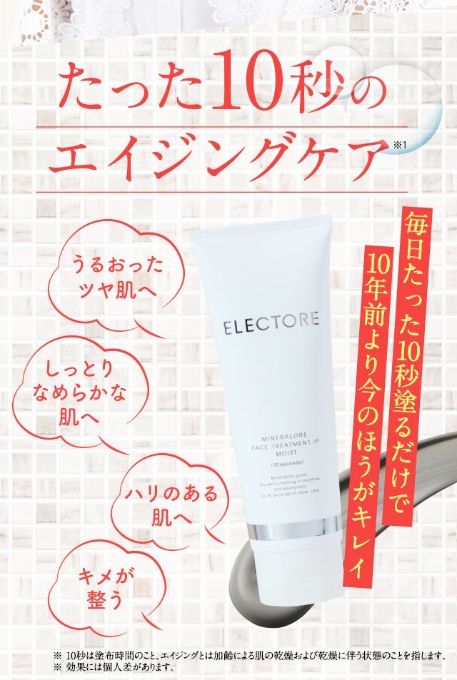 エイジングケア*について悩んでいたときに、このエレクトーレと出会いました。毎日10秒*でハリ・ツヤ・うるおい・透明感*全部ケアできるのは嬉しい。いつでもどこでも使っています!